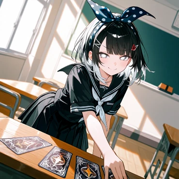 Appearance: Klara has a pixie cut of white hair that frames her serious face, she sports a unique look, accentuated by a distinctive eyepatch that adds an air of mystery, together with green eyes. Klara's muscular frame defies the stereotypical image of a trainer, and her choice of casual athletic gymwear, often a black sports bra and shorts, reflects her practical approach to life. Despite her love for unhealthy food, which contradicts her health-related profession, Klara manages to maintain an enviously fit physique.