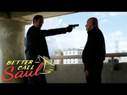 Chris Redfield (Resident Evil) using his gun to disarm Carla, blasting her own gun out of her hands.