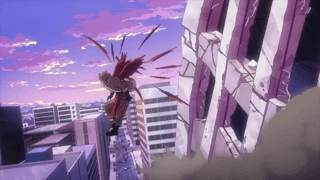 Seiichi Samura (Kagurabachi) manifesting his Enchanted Blade, Tobimune's Spirit Energy in the form of feathers assembled as wings.