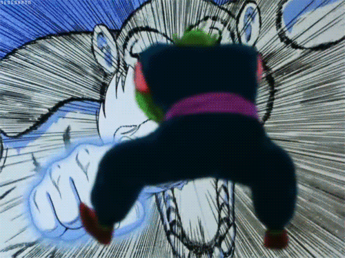 Both Goku and Vegeta (Dragon Ball Z: The Return of Cooler) using the Double Super Saiyan to destroy Cooler's robotic body.