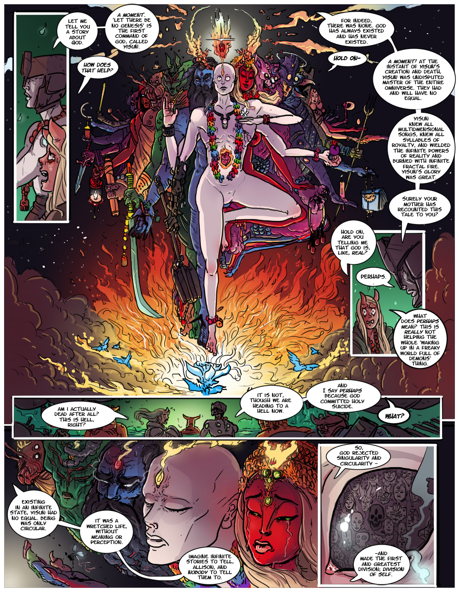 - "Who am I? One name you might have for me is the World, or you might call me the Universe, or perhaps God, or perhaps the Truth. I am All, and I am One. So, of course, this also means that I am you. I am the truth of your despair, the inescapable price of your boastfulness."